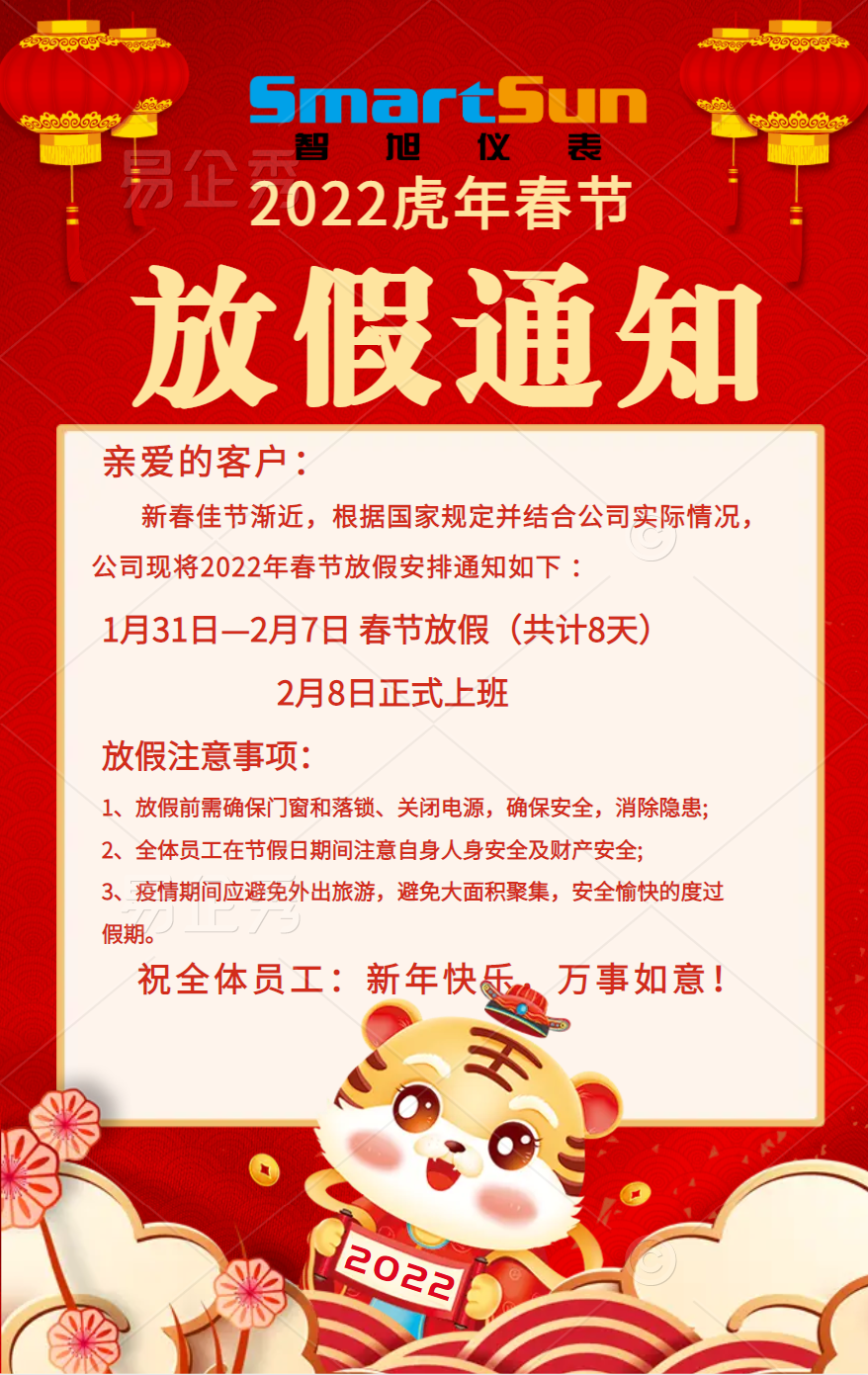 2022年春節(jié)假期放假通知發(fā)布時(shí)間:2022年01月28日 -